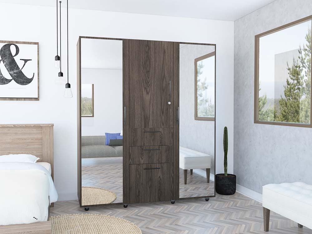 Closet Vegas con Espejos, Chocolate y Blanco, con Tres Cajones y Variedad de Entrepaños