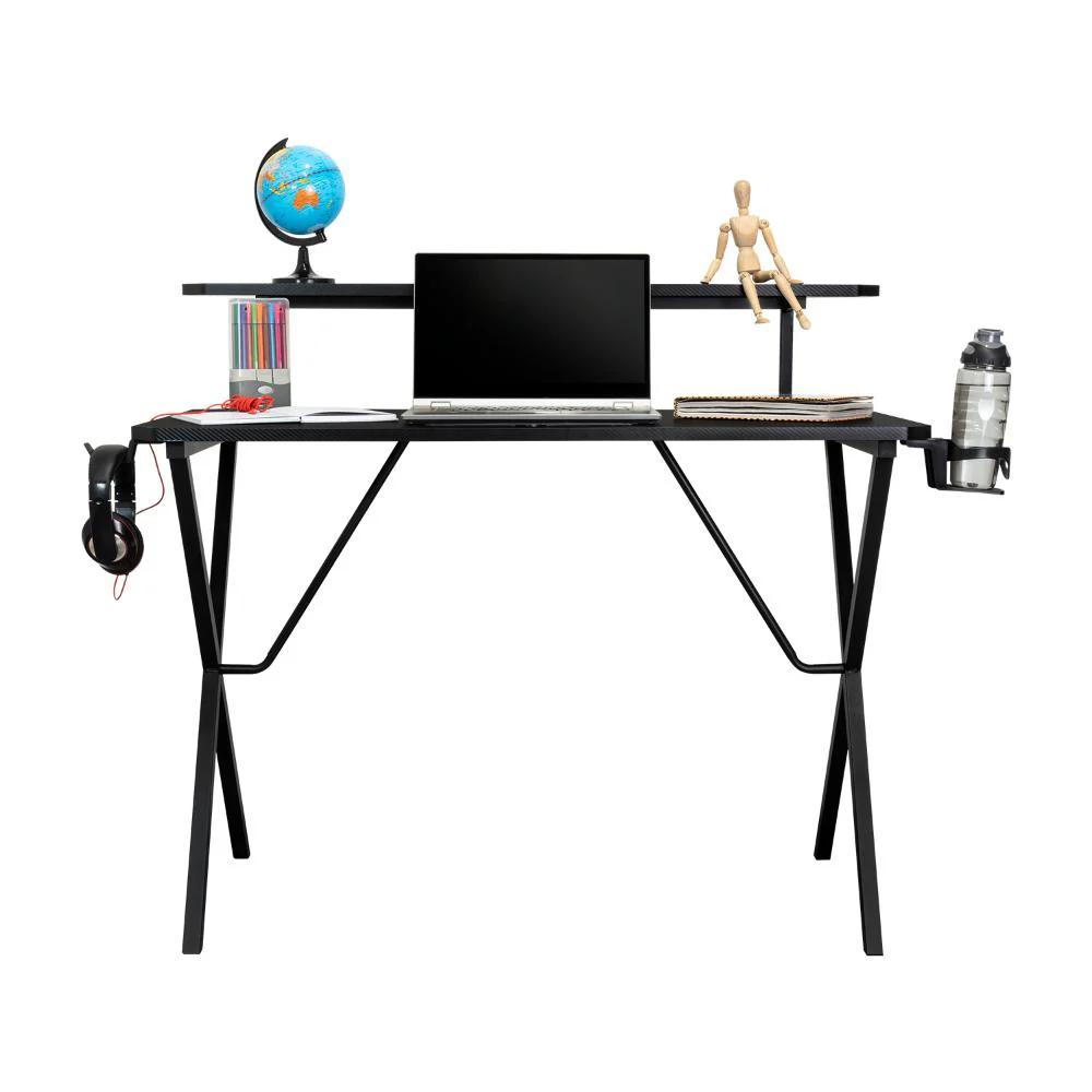 Escritorio Gamer , en color negro, tablero en malamina de 18 mm, tubos en metal y es de facil armado