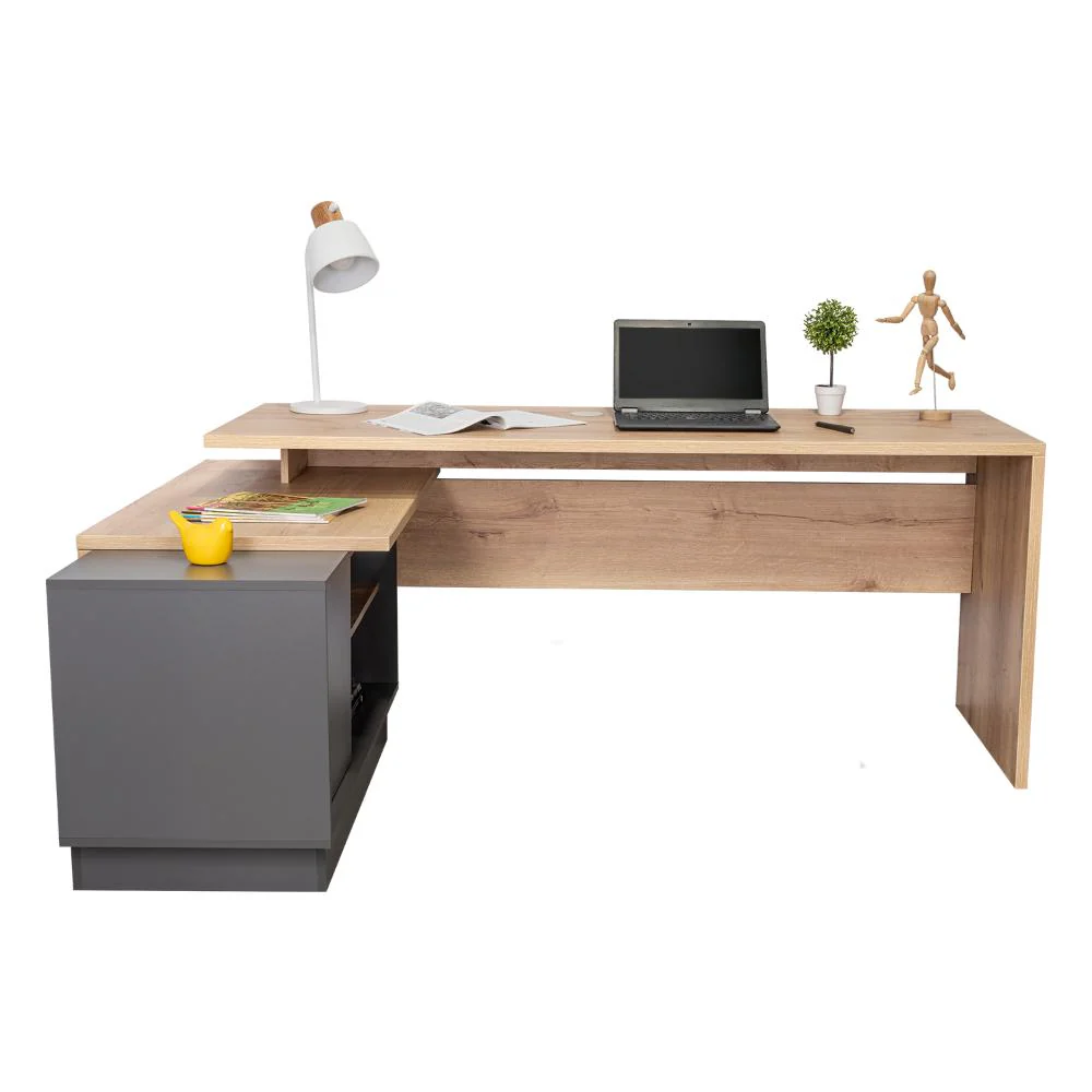 Escritorio L Taira, Café Claro y Plata Oscuro, con Amplia Superficie de Trabajo