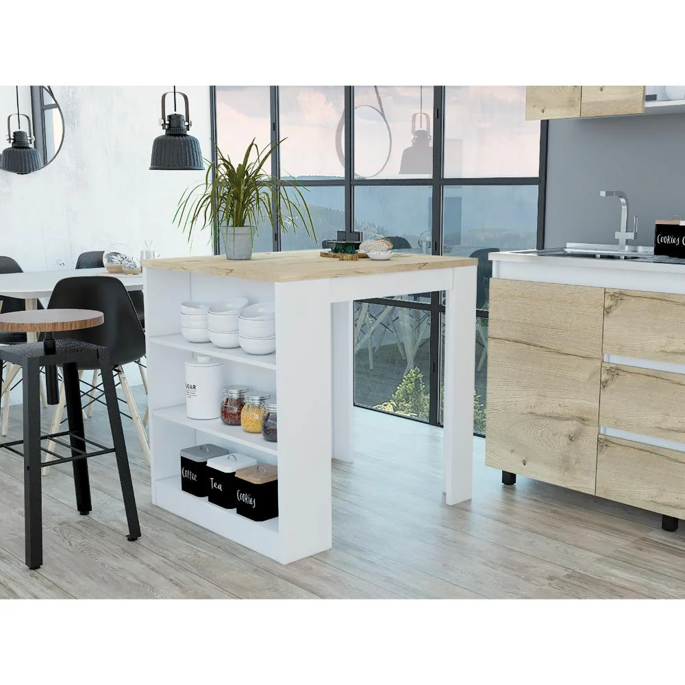 Mesa Auxiliar Mayer, Blanco y Café Claro, con Amplia Supeicie En La Mesa y Tres Entrepaños ZF
