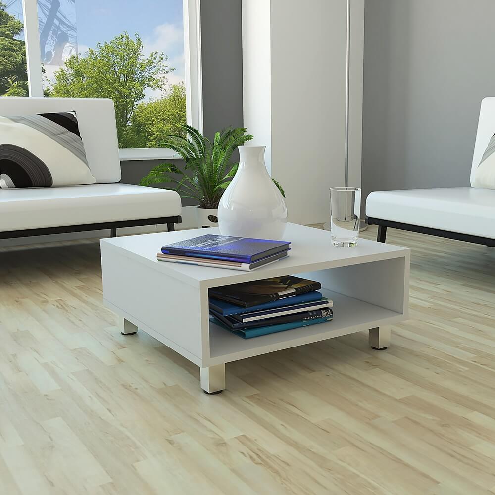 Mesa de Centro Pity, Blanco, con Patas En Acero Cromado